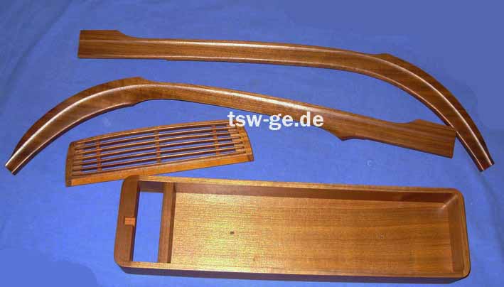 Holzsatz 4-teilig. besteht aus: Fensterschlüssel 2-teilig Lautsprechergrill Nussbaum Holzablage an Kardantunnel